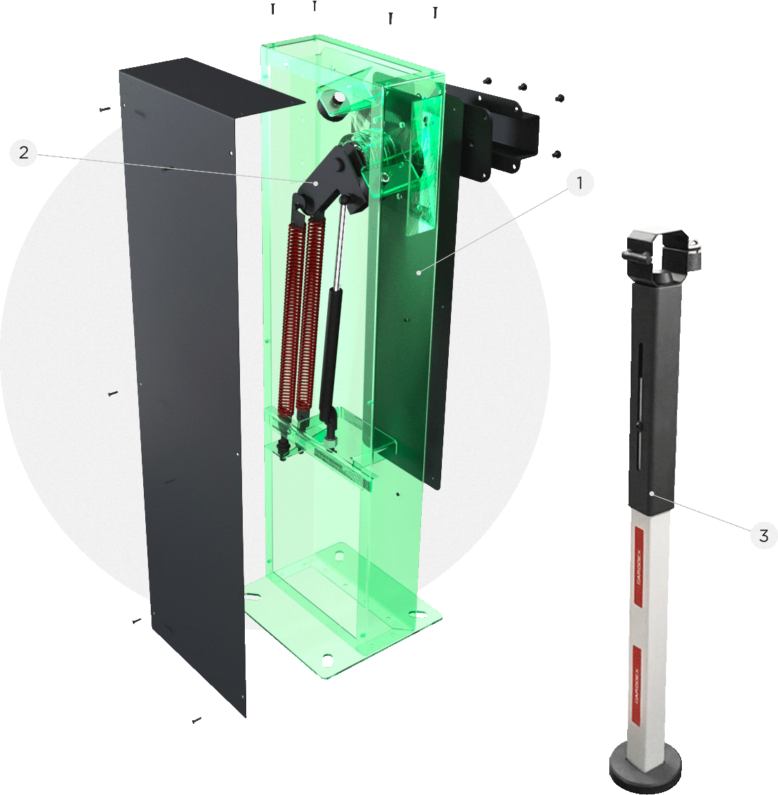 Стальная стрела из профиля 60*40 мм надежно фиксируется механическим замком в опоре стрелоуловителя. Элегантный дизайн шлагбаумов серии «MBT» позволяет вписать их в любой экстерьер на различных объектах.