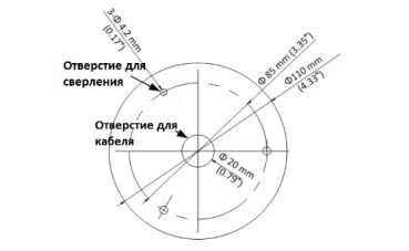 - Просверлите отверстия в потолке в соответствии с шаблоном крепления. Просверлите отверстие для кабеля, если хотите проложить кабель через потолок;